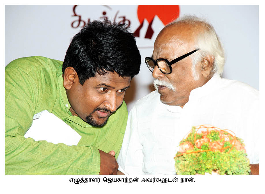 இப்படி ஜே.கே தந்த பதில் எனக்கு மேலும் அதிர்ச்சியைத் தந்தது! ஏனென்றால், எனது விழா நேரம் மதியம் 3:00 to 4:00. அவரது விழா 4:15 to 5:15! இடையில் 15 நிமிடங்கள் மட்டுமே! அதுவும் சென்னையில் வேறு ஓர் அரங்கத்தில் நடக்கிறது! ஜே.கே இப்படிச் செய்தது எனக்குள் ஒரு திகிலை ஏற்படுத்திவிட்டது என்றாலும், அவர் இதயத்தில் எனக்கு எவ்வளவு பெரிய இடத்தை கொடுத்திருக்கிறார் என்பதை நினைத்துப் பூரித்துப் போனேன்! இதை விழா மேடையிலேயே அனைவரிடமும் மிக நெகிழ்ச்சியுடன் பகிர்ந்து கொண்டேன்!