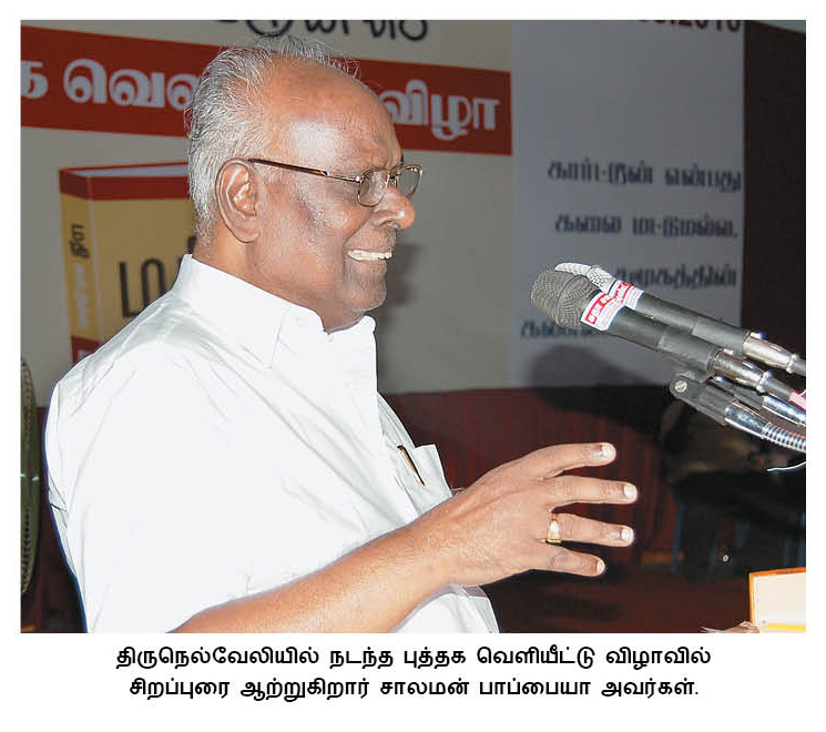 புத்தகத்தின் ஐந்தாவது தொகுப்பை சாலமன் பாப்பையா அவர்கள் பெற்றுக்கொள்வதாக இருந்தது. மேடையில் கலாம் சாருக்கும், எனக்கும் மட்டுமே பேச நேரமும் அனுமதியும் இருந்தது. ஏற்கெனவே எனக்கு திகிலாக இருந்த விஷயம் இதுதான். சாலமன் பாப்பையா அவர்கள் பேசாமல், நான் மேடையில் பேசினால்?