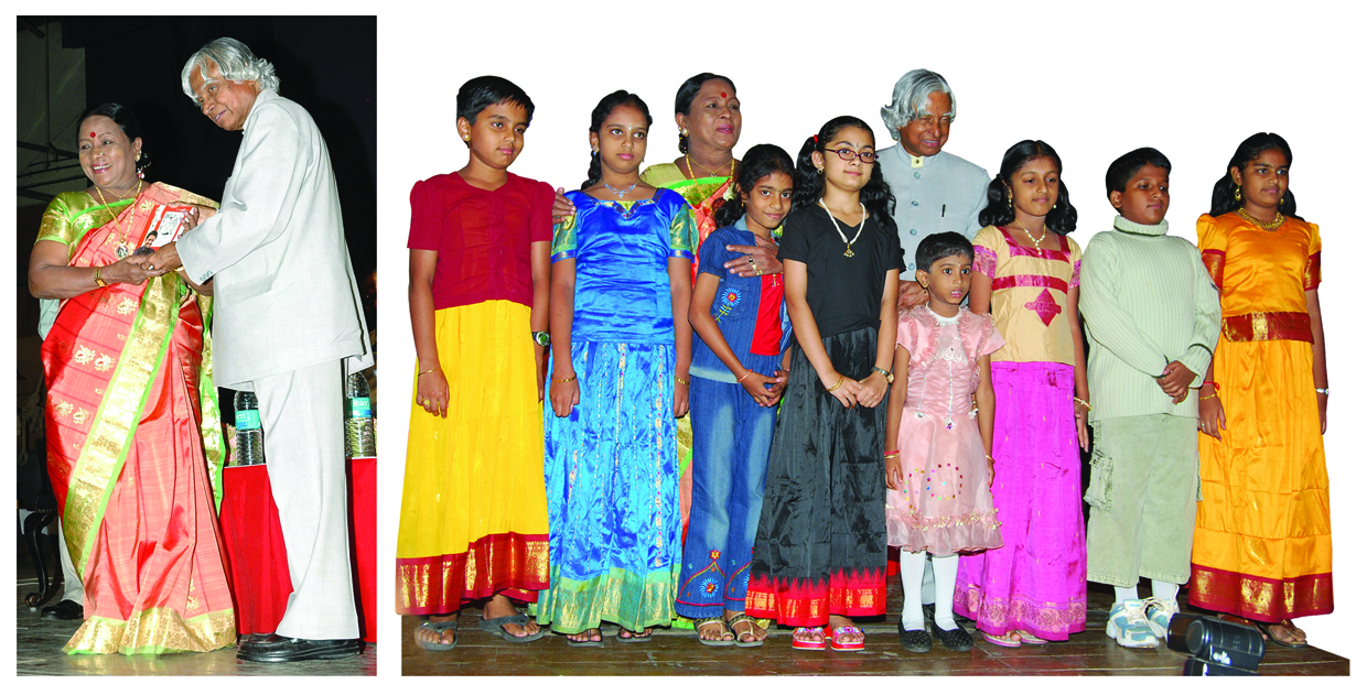 கலாம் சாரையும் சேர்த்து ஒட்டுமொத்தமாக மேடையில் இருந்த ஒன்பது பேரையும் வரவேற்கும் விதமாக பூங்கொத்து கொடுப்பதற்காக ஒன்பது குழந்தைகளை ஏற்பாடு செய்திருந்தேன். அவ்வாறு பூங்கொத்து கொடுத்து முடித்தவுடன் குழந்தைகளின் ஆசைகளை நிறைவேற்றும்விதமாக ஓர் புகைப்படம் எடுத்துக்கொள்ள கலாம் சாரை எழுந்து வருமாறு வேண்டுகோள் விடுத்தேன். மகிழ்ச்சியுடன் தனது இருக்கையிலிருந்து எழுந்து வந்த கலாம், குழந்தைகளோடு நெருங்கி நின்று அவர்களுடன் நின்று புகைப்படம் எடுத்துக்கொள்ளத் தயாரானவர், திடீரென ஆச்சி மனோரமாவைத் திரும்பிப் பார்த்து, ‘ஆச்சி, நீங்களும் புகைப்படத்திற்கு வாருங்கள். குழந்தைகள் அனைவருக்கும் உங்களையும் ரொம்பப் பிடிக்குமே…’ என்று அழைத்தார். மனோரமா அவர்கள் விழா முடிந்ததும் ‘இப்படி குழந்தைகளுக்கு என்னையும் பிடிக்கும் என்று சொல்லி என்னை நெகிழச் செய்து விட்டாரே! என்ன ஒரு மனசு! என்ன ஒரு எளிமை! என்ன ஒரு பண்பு…!’ என்று இது குறித்து என்னிடம் மீண்டும் மீண்டும் சொல்லி மகிழ்ந்தார்.