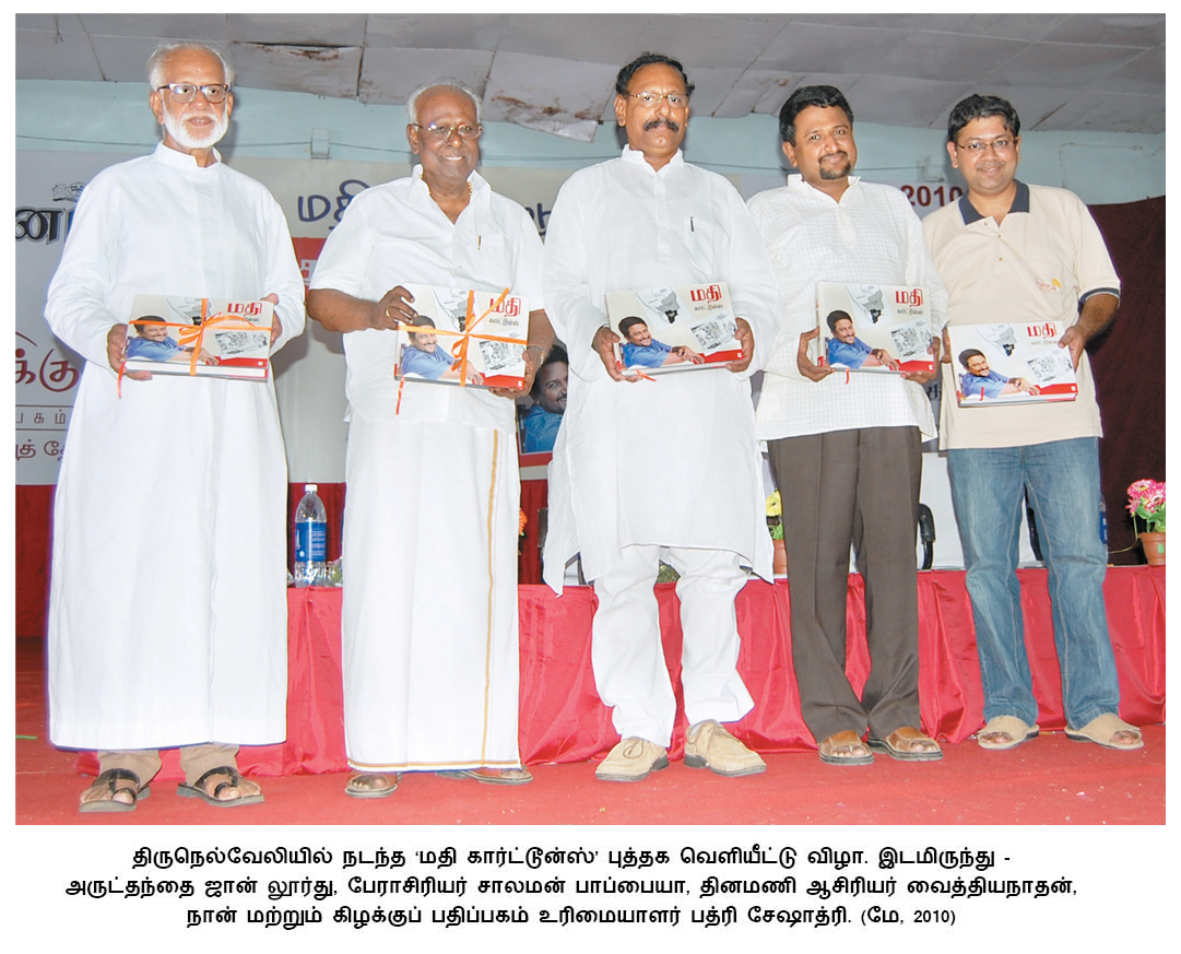 தினமணி–யின் முதல் பக்கத்தில் வெளியான எனது ‘அடடே’ கார்ட்டூன்களின் ஆறு தொகுப்புகள் 2008, ஏப்ரலில் டாக்டர் அப்துல் கலாம் அவர்களால் மிகச் சிறப்பாக வெளியிடப்பட்டன. அடுத்ததாக தினமணி–யின் நடுப் பக்கத்தில் வெளியாகும் எனது பெரிய கார்ட்டூன்களின் தொகுப்பு வெளியிடப்படுவதற்குத் தயாராக இருந்தது. இந்தப் புத்தக வெளியீட்டு விழாவையும் சென்னையிலேயே நடத்துவதா அல்லது வேறு ஏதாவது ஊரில் நடத்துவதா என தினமணி ஆசிரியர் கே.வைத்தியநாதன் அவர்களிடம் ஆலோசனை செய்து கொண்டிருந்தபோது ‘‘இதில் என்ன சந்தேகம்? மீண்டும் சென்னை எதற்கு? உங்கள் சொந்த ஊரான திருநெல்வேலியில் அந்த விழாவை நடத்துவதுதான் சரியாக இருக்கும்’’ என பளிச்சென்று பதில் அளித்தார். எனக்கும் அந்த ஐடியா பிடித்திருந்தது. கிழக்கு பதிப்பகம் உரிமையாளர் பத்ரி சேஷாத்ரி அவர்களும் அதையே விரும்பினார். புத்தகத்தை தினமணி ஆசிரியர் கே.வைத்தியநாதனை வைத்தே வெளியிடலாம் என்று முடிவு செய்தேன்.