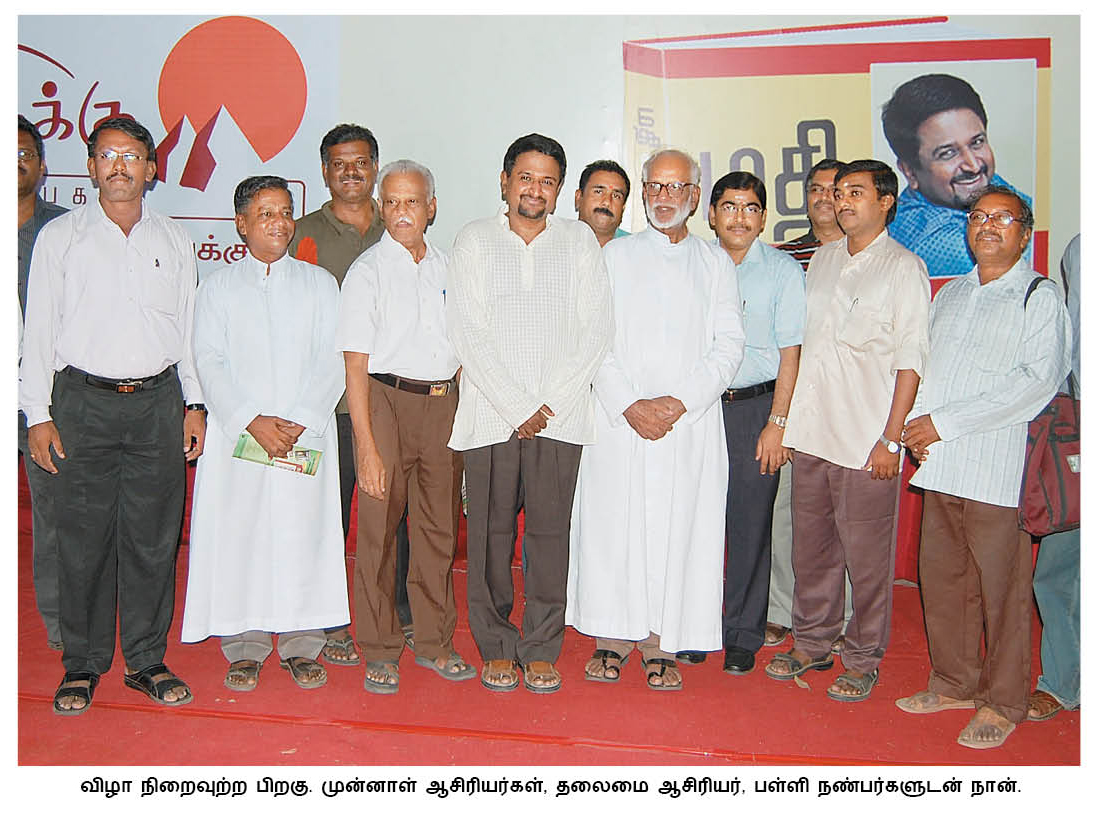 மே 31, 2010 மாலை திருநெல்வேலி ஜங்ஷனில் உள்ள ம.தி.தா. இந்து மேல்நிலைப் பள்ளி மைதானத்தில் விழா ஏற்பாடாகி இருந்தது. விழா நாளன்று விழா தொடங்குவதற்கு முன் ஃபாதர் ஜான் லூர்து அவர்கள், சொந்த ஊர்க்காரர்கள், உடன் படித்த மாணவர்கள் என ஒவ்வொருவராகத் தேடிச் சென்று பேசிக் கொண்டிருந்தேன். அப்போதுதான் எனது கண்ணில்பட்டார் அவர்!