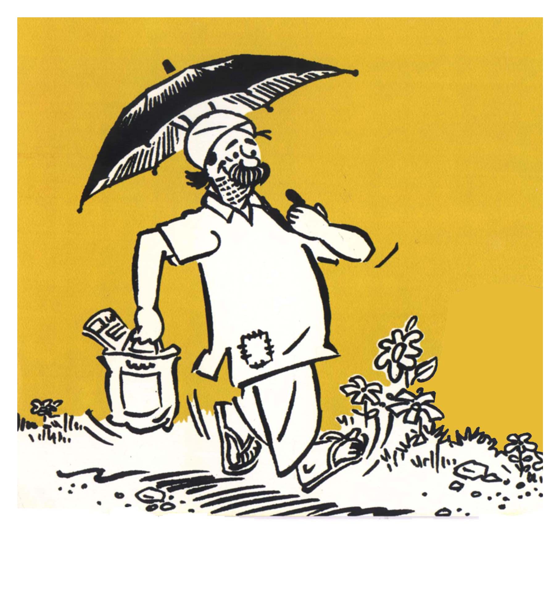இவரது தலைப்பாகை இந்த தேசத்தின் சாமான்ய பெரும்பான்மையினரைக் குறிக்கிறது. தலைப்பாகைக்கு உள்ளே உள்ள வழுக்கைத் தலையோ இவரது அனுபவத்தைக் காட்டுகிறது. இவரது பெருத்த மீசை இவர் இன்னும் சோர்வுறவில்லை என்பதைச் சொல்லாமல் சொல்கிறது. இவருடைய ஒட்டுப்போட்ட சட்டை, இவருடைய பொருளாதாரம்; இவருடைய தேய்ந்து போன செருப்பு, இவரது அயராத உழைப்பு; இவரது குடை, இவருக்கு உற்ற துணை.